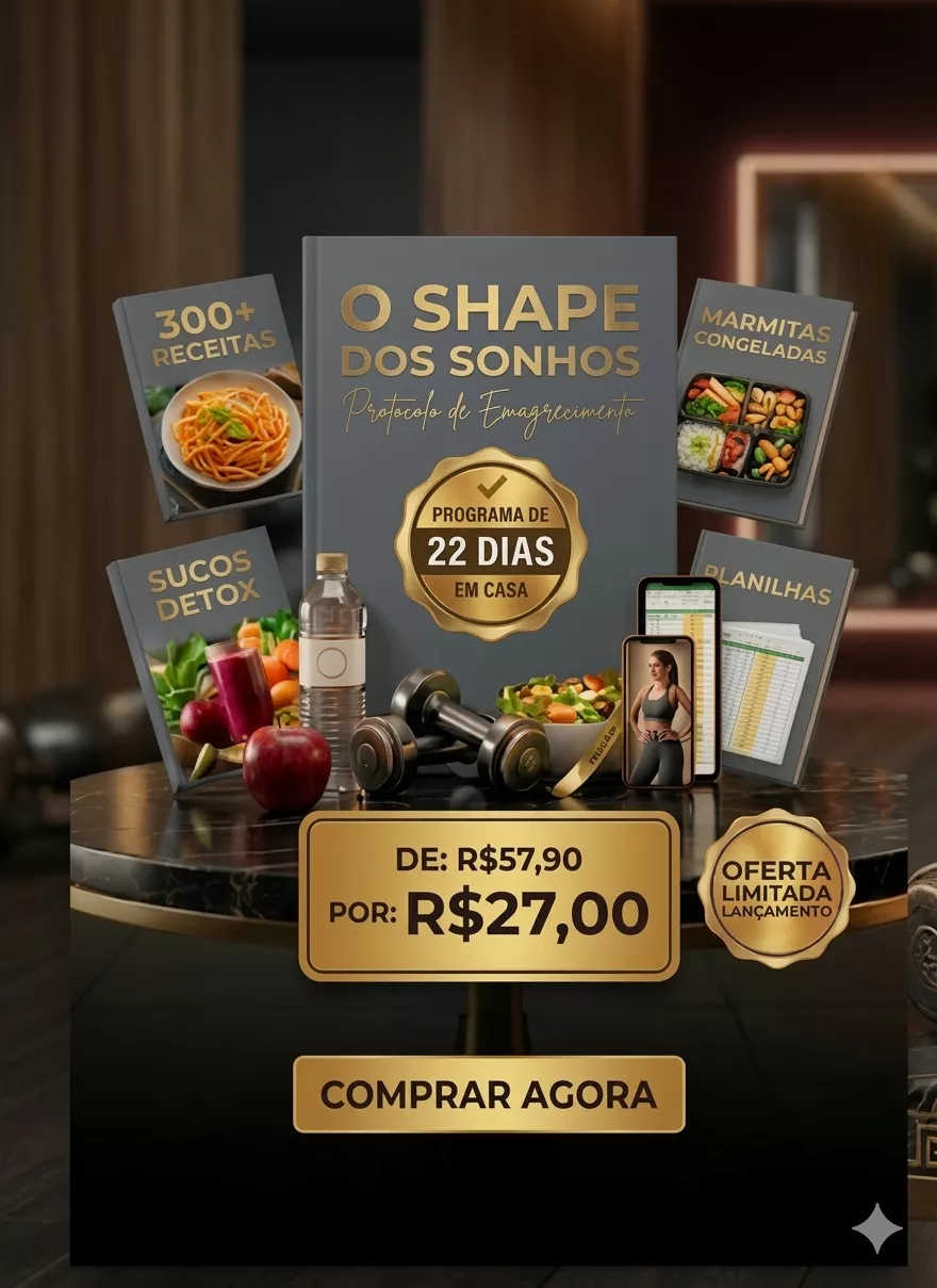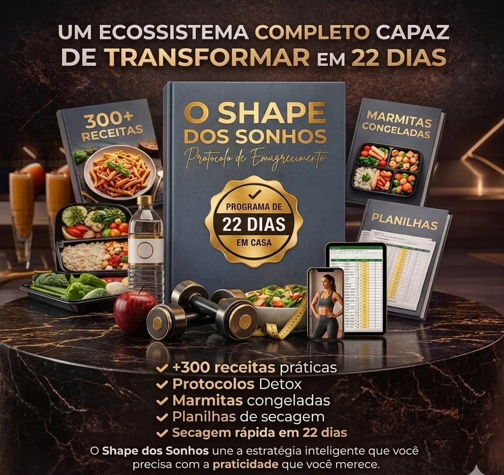 O Shape dos Sonhos é um guia digital de emagrecimento criado para quem quer secar e transformar o corpo em apenas 22 dias, de forma prática e organizada. O método reúne um plano simples de seguir, com mais de 300 receitas, guia de marmitas, protocolo de sucos detox e planilhas de acompanhamento, tudo pensado para quem tem rotina corrida e quer resultados reais sem dietas complicadas.